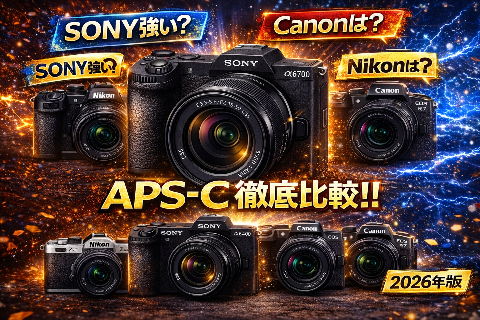 APS-Cミラーレスカメラを選ぶとき、多くの人が迷いやすいのが「どの機種が自分の撮影スタイルに合っているのか」という点です。特にSONY α6700、SONY α6400、Nikon Z50II、Nikon Z fc、Canon EOS R10、Canon EOS R7あたりは、価格帯もターゲット層も近く見えやすいため、比較候補として挙がりやすいモデルです。