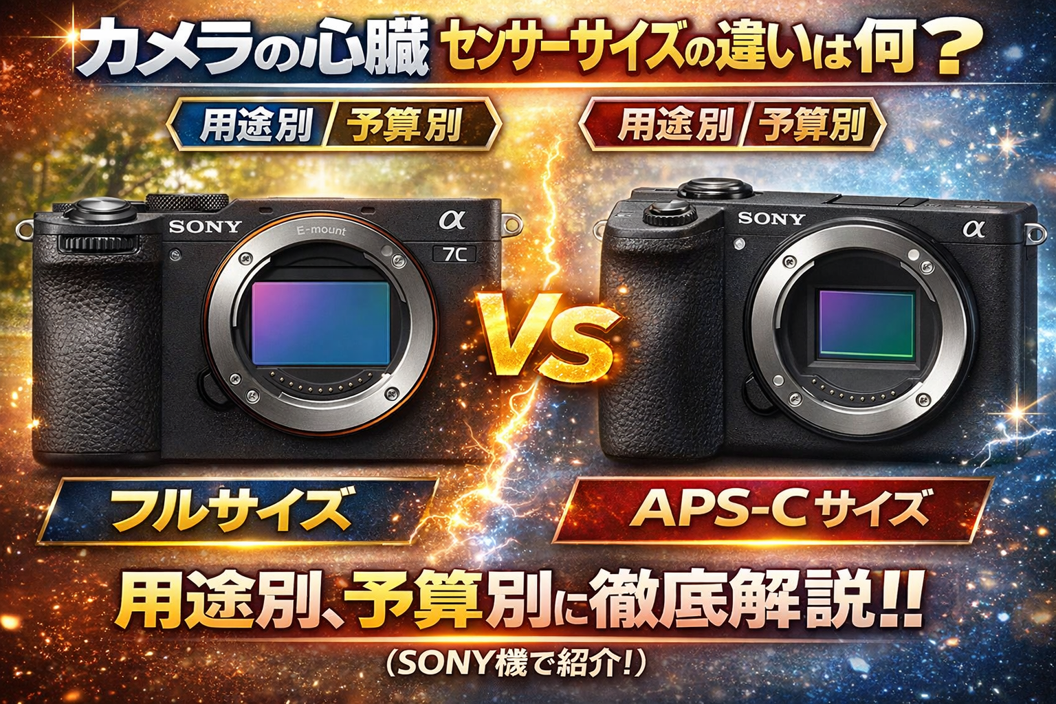 特に大手メーカーの主力クラスでは、フルサイズとAPS-Cが大きな分岐点になっています。そして実際には、この違いは単なる画質の上下ではありません。何を撮るか、どこまでお金をかけるか、ファインダーが必要かどうかまで含めて、カメラの性格そのものを変えています。今回は参考機種として、フルサイズのα7C IIとZV-E1、APS-Cのα6700とZV-E10M2を使いながら、用途別、予算別に整理します。