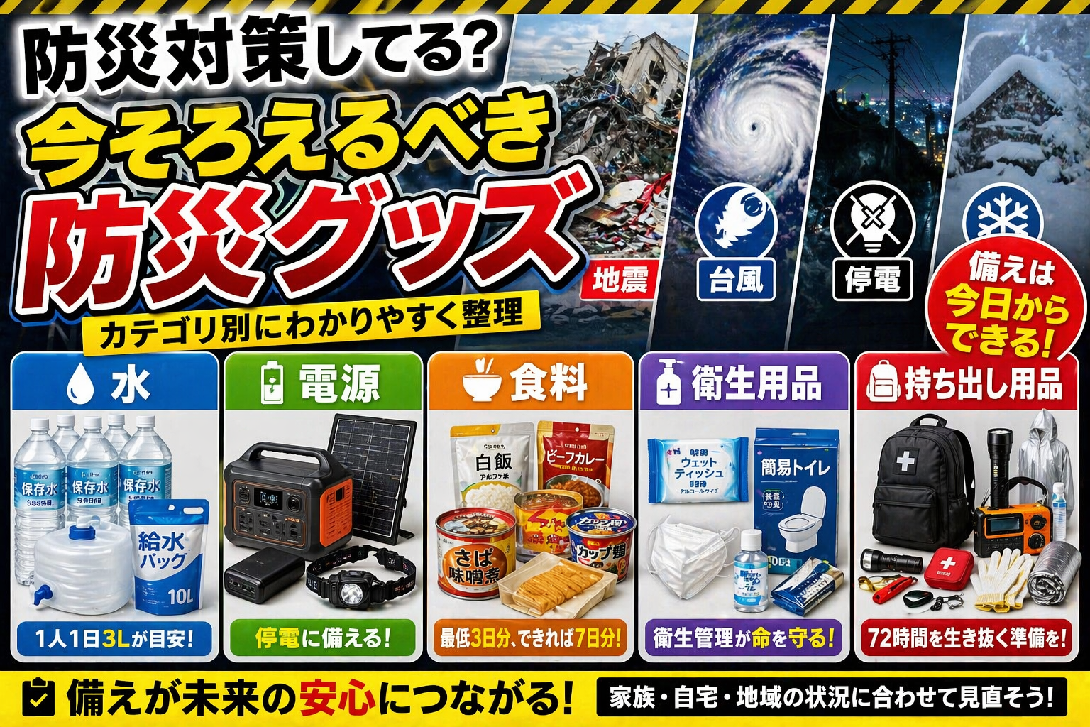 非常食、防災バッグ、ポータブル電源、簡易トイレなど候補が多すぎて、結局あと回しになってしまうことも少なくありません。