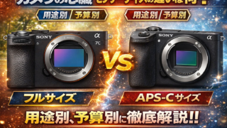 1.カメラ 【カメラ】カメラの心臓!!センサーサイズの違いは何?フルサイズとAPS-Cサイズを用途別、予算別に徹底解説!!(SONY機で紹介!) フルサイズが上、APS-Cが下。そう考えると、かなりの確率で選び方を間違えます。 2026.04.03 1.カメラ
